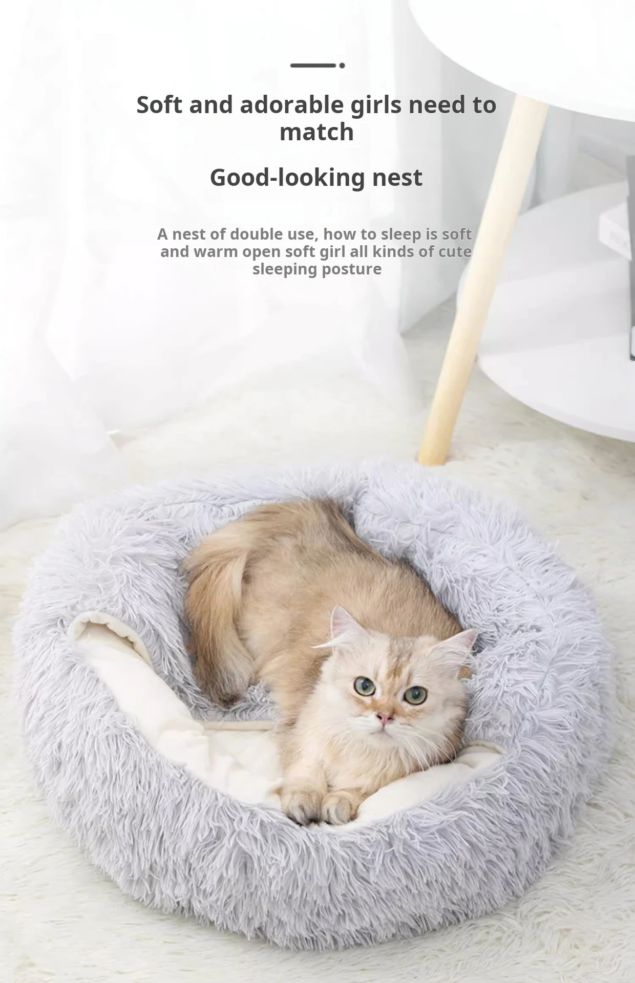 Autumn And Winter Soft Plush Pet Bed And Pet Bed Winter Warm And Cold Plush Comforter Nest Shell Cat Nest Semi-enclosed Cat Nest
