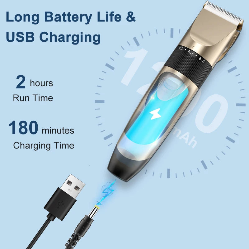 Equipped with ultra-sharp stainless-steel blades, PawTrim™ glides smoothly through all fur types — from fine cat hair to thick dog coats — without snagging or pulling. The low-noise motor helps keep pets calm during grooming, while the cordless, USB rechargeable design offers full freedom of movement and convenience.