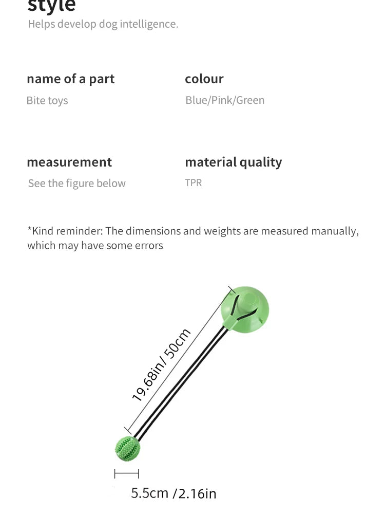 Product Description: Discover the ultimate in dog playtime fun! Made of durable rubber, this interactive dog suction cup toy is designed to meet your dog's chewing and play needs. Not only does the toy feature food leakage, it also makes fun sounds to capture your dog's attention and stimulate their curiosity. Suitable for all breeds of dogs, it is perfect for playing alone or interacting with their owners.