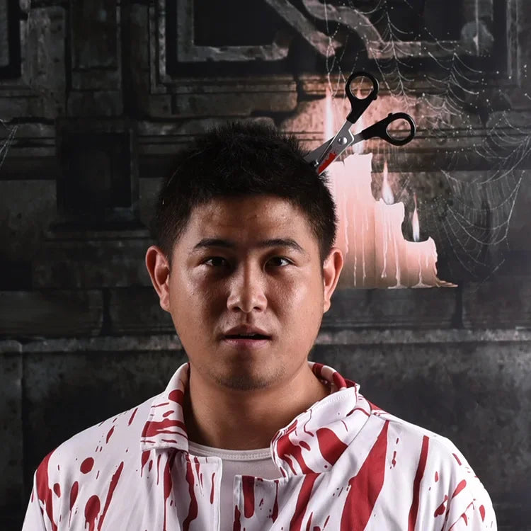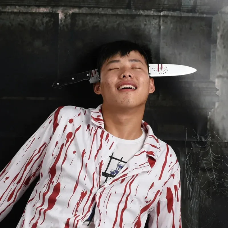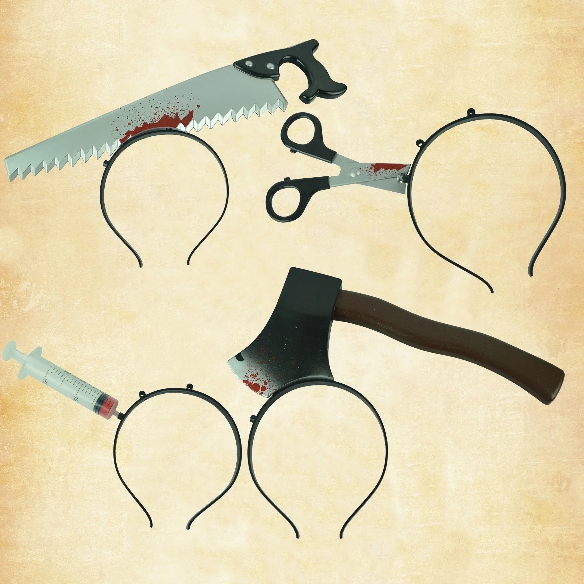 ✅ Includes plastic ax, saw, nail, and knife headwear for a spooky effect