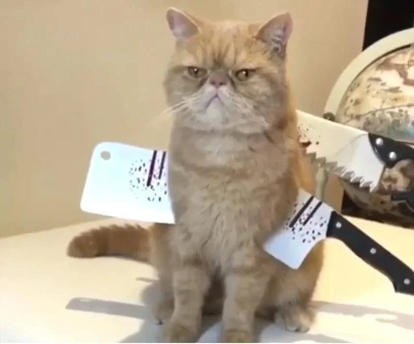 Pet Halloween Props – Funny & Scary Toys for Dogs & Cats, Plastic Ax, Saw, Nail, Knife Headwear Party Favors