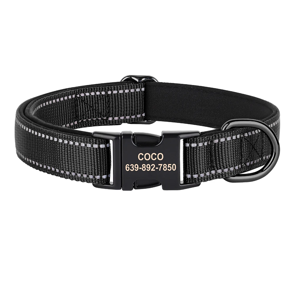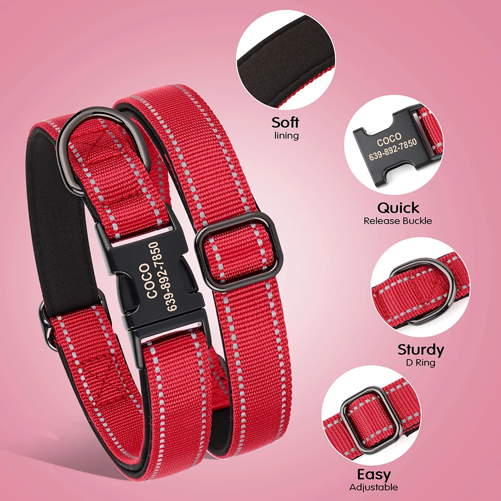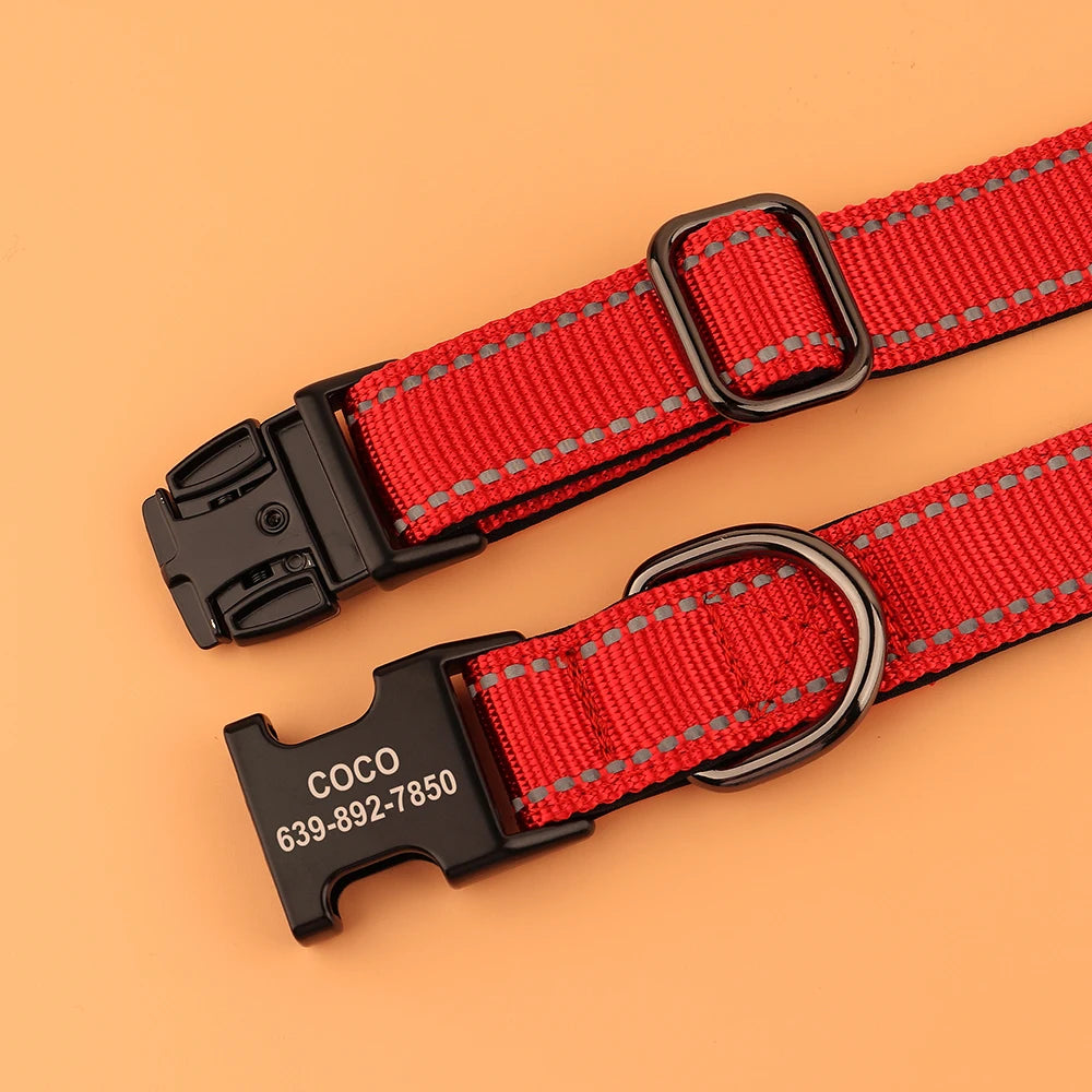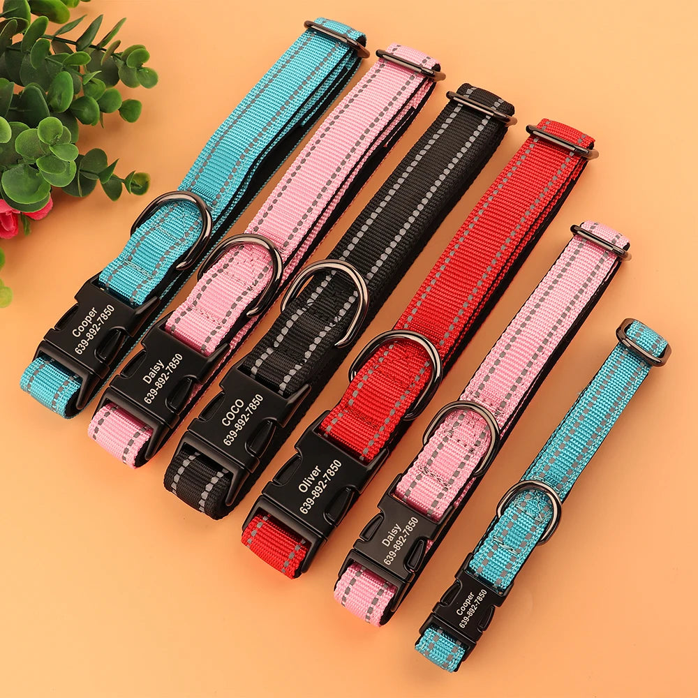 Personalized Nylon Dog Collar Reflective Dog Collars Engraved Puppy Collar ID Necklace Adjustable for Small Medium Large Dogs
